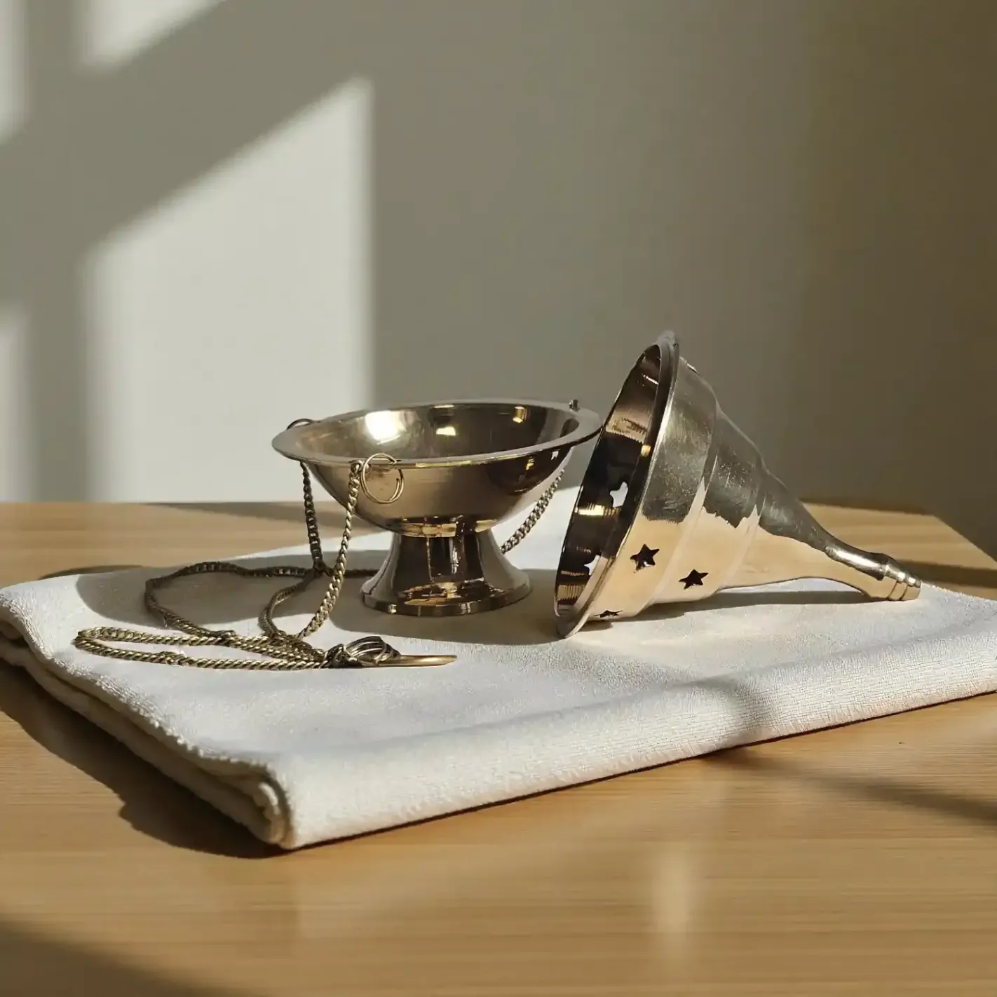 - Éléments : Encensoir avec couvercle ajouré + chaînette suspendue