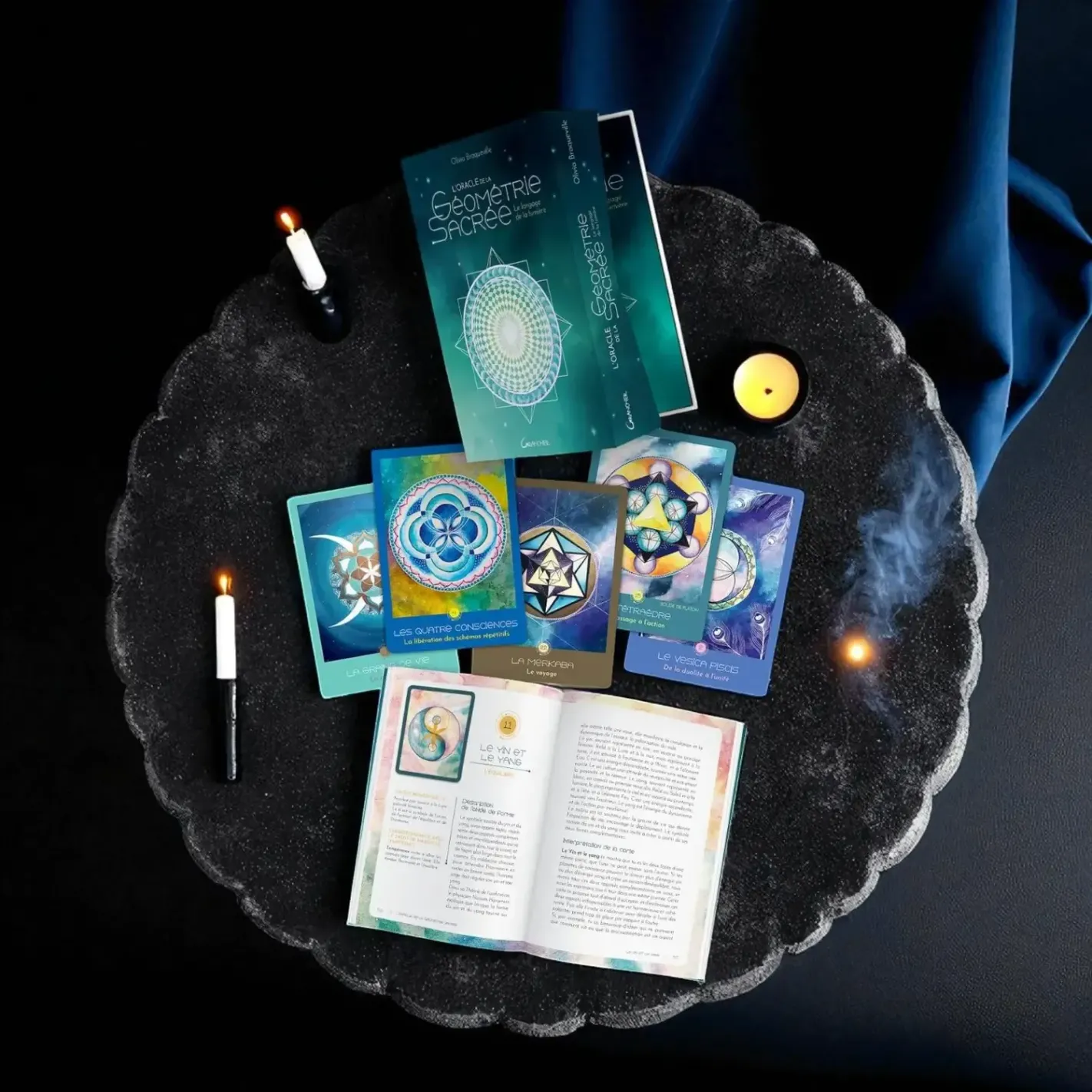 - Cartes : 22 formes géométriques sacrées peintes à la main