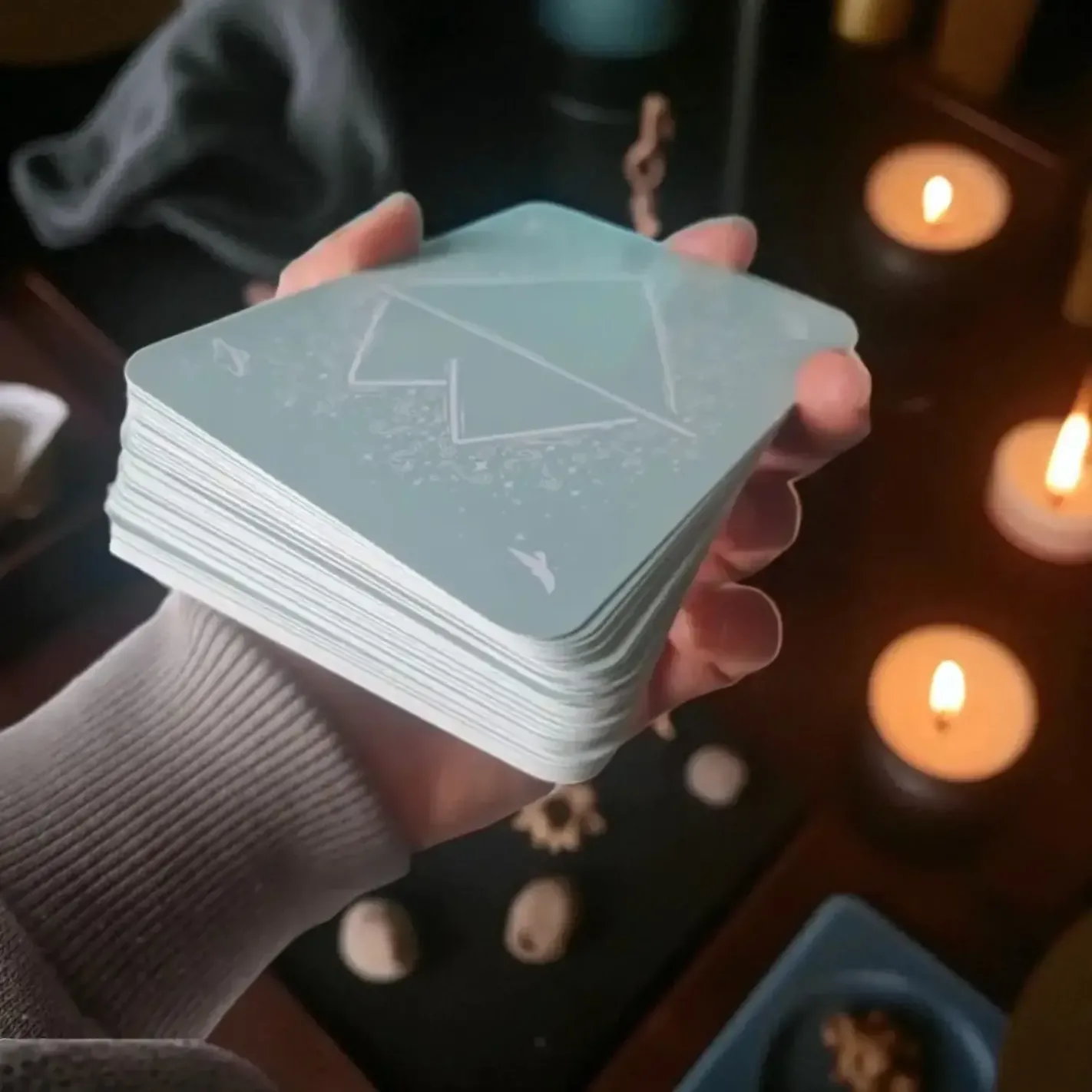 Conserver à plat, à l’abri de l’humidité. Avant la première utilisation, purifier les cartes (fumigation, bol chantant) pour ancrer vos intentions ().