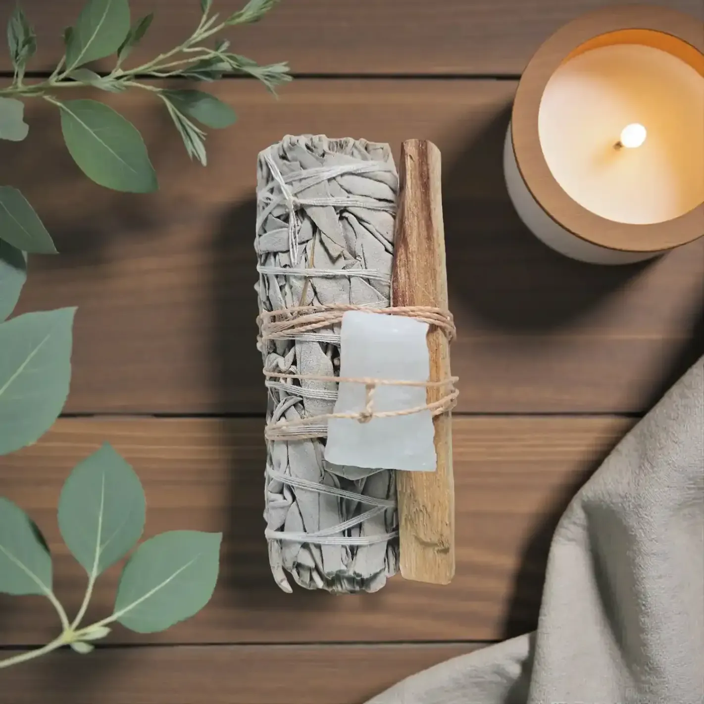 Trio Sacré de Purification – Sauge Blanche, Palo Santo & Cristal de Roche