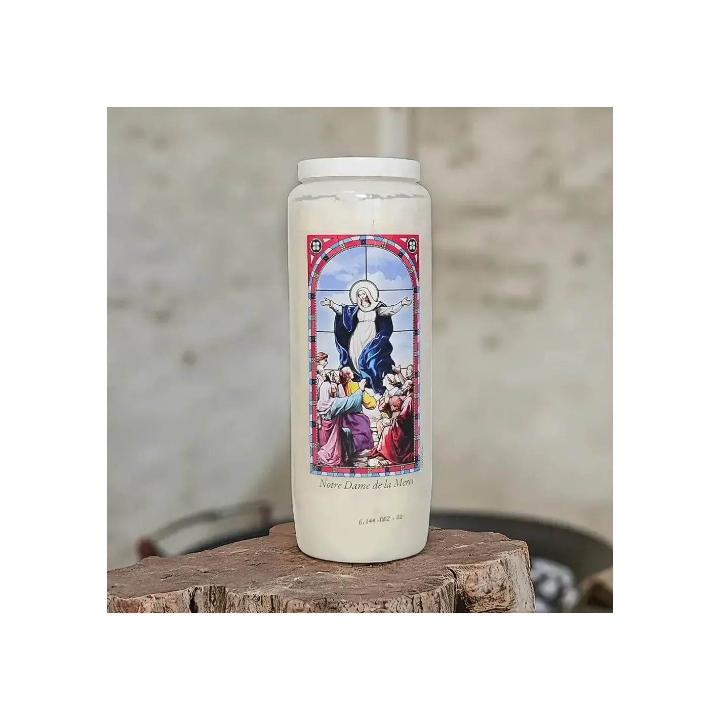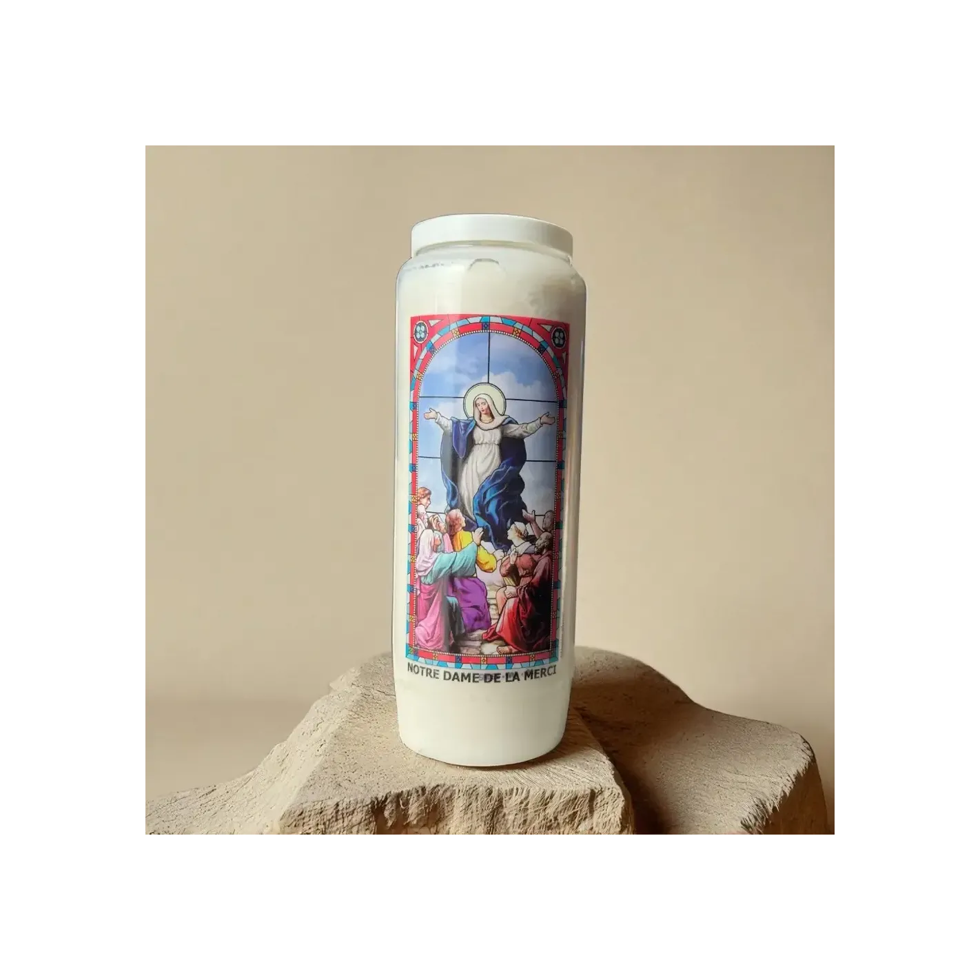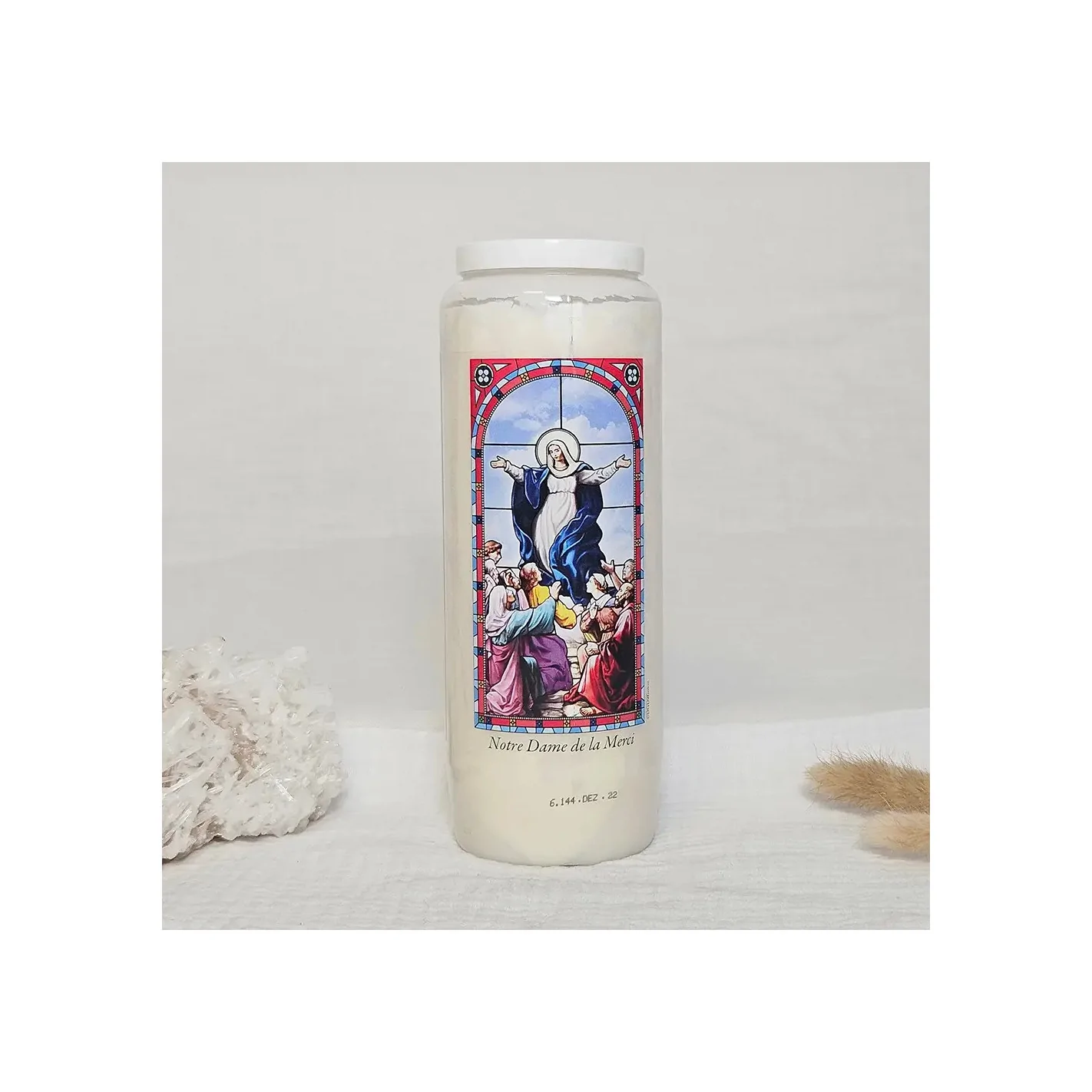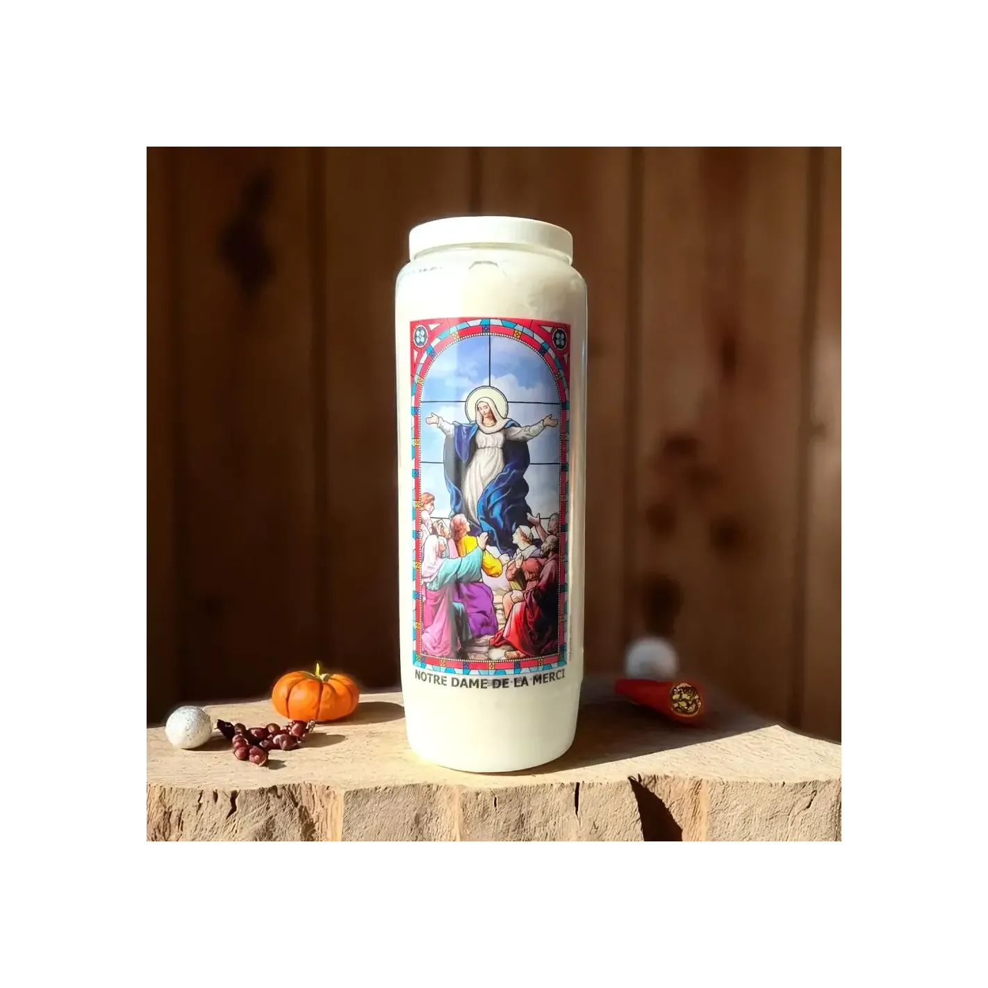 Allumez votre neuvaine Notre-Dame de la Merci dans un lieu paisible, avec une intention claire. Récitez chaque jour une prière mariale ou un texte de méditation en lien avec la libération ou le pardon. Laissez la flamme vous guider avec douceur et confiance.