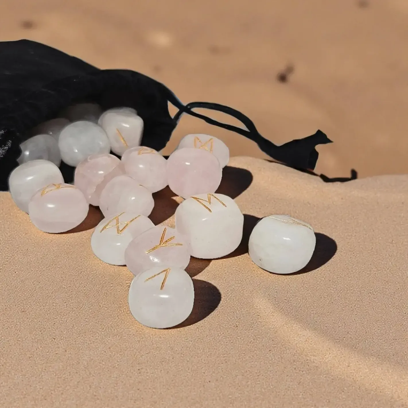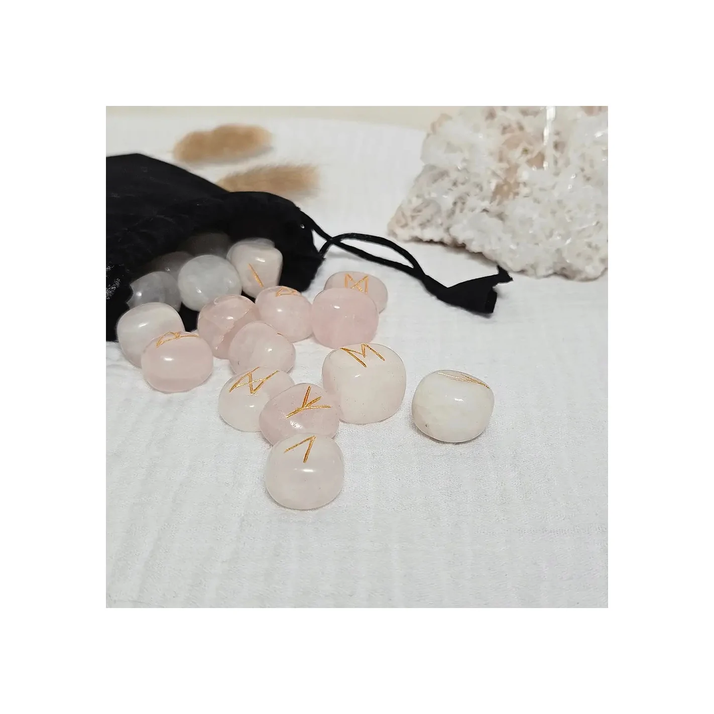 Explorez votre monde intérieur avec ce jeu de 25 runes en quartz rose, un oracle tendre et puissant à la fois.