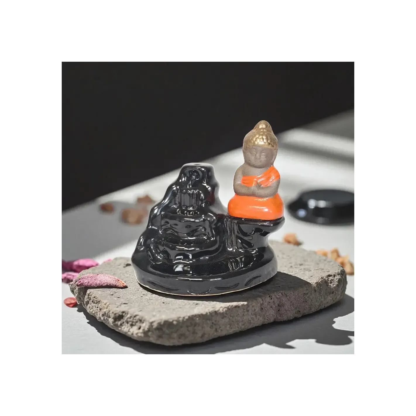 Plongez dans une ambiance sacrée avec le porte-encens backflow Bouddha, une fontaine de sérénité pour vos rituels quotidiens.