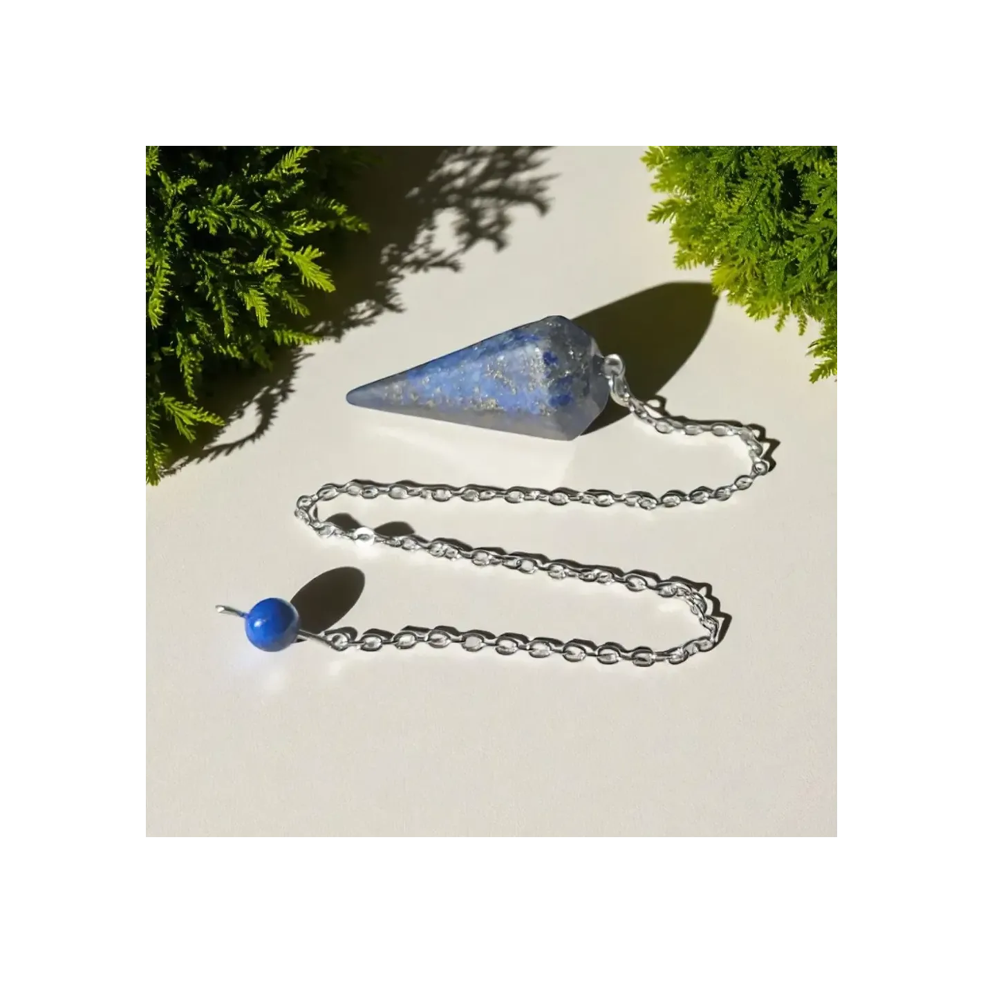 Purifiez votre pendule régulièrement à l’aide de fumée ou sur une fleur de vie. Rechargez-le sous la lumière lunaire ou sur une géode de quartz. Conservez-le dans une pochette dédiée. En pierre naturelle, chaque pendule est unique par ses veines et nuances de bleu profond.