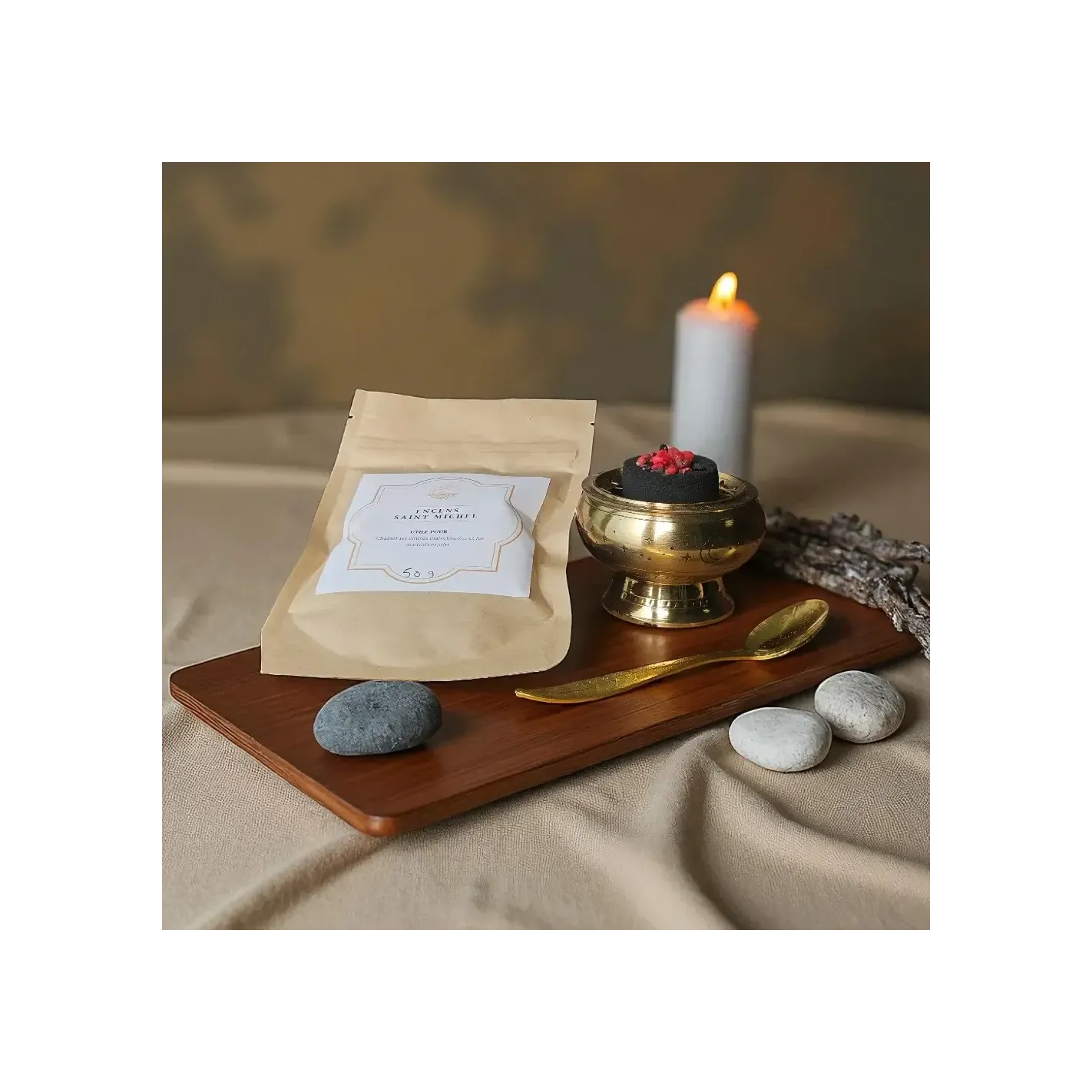 À brûler sur un charbon ardent, cet encens est recommandé pour les purifications profondes, les séances de protection spirituelle, ou lors de prières adressées à l’archange Saint Michel. Il est aussi utilisé pour bénir un lieu, affirmer son espace ou couper les liens énergétiques nuisibles.