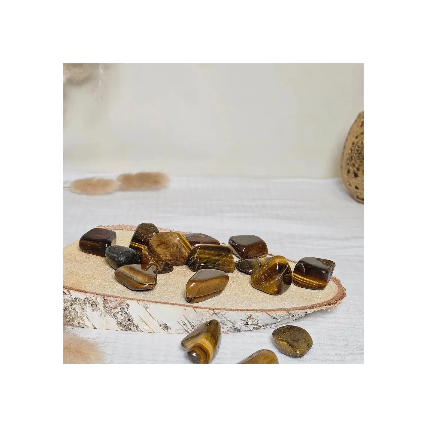 Faites rayonner votre force intérieure avec la pierre œil de tigre roulée, gardienne de votre énergie.
