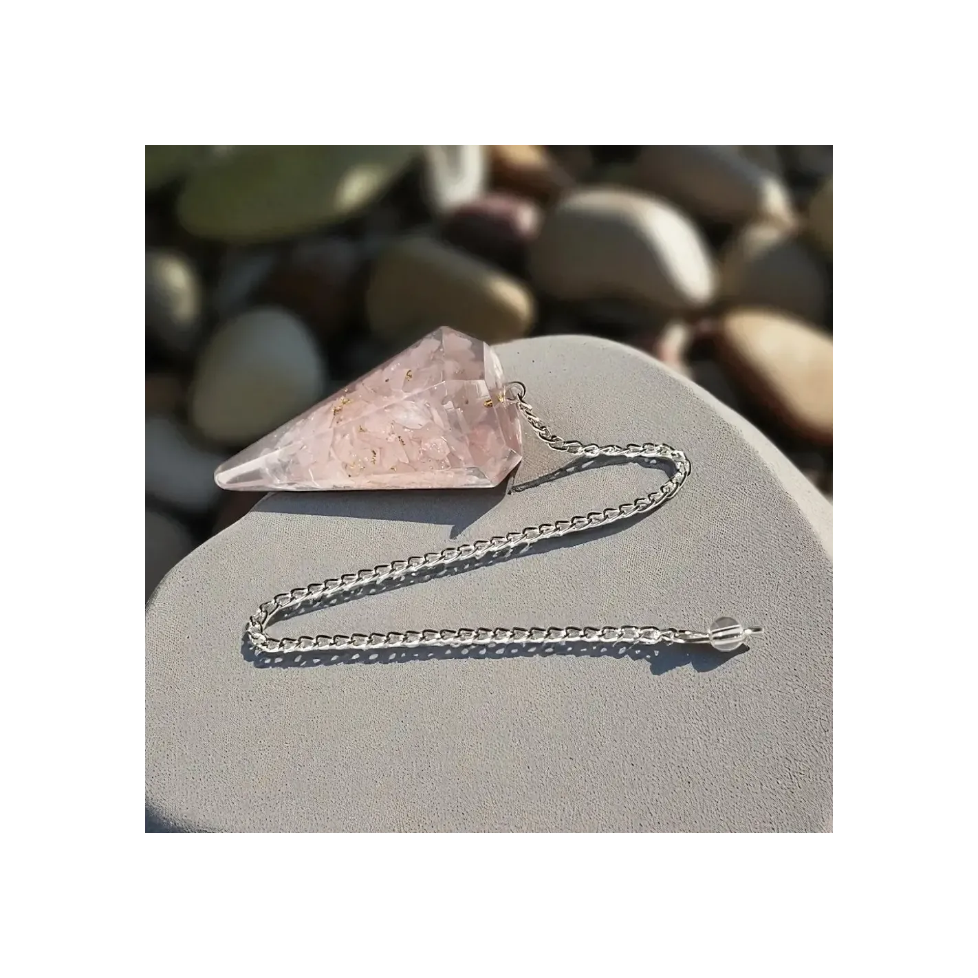 Pendule Orgonite Quartz Rose – Amour, paix intérieure et radiesthésie intuitive