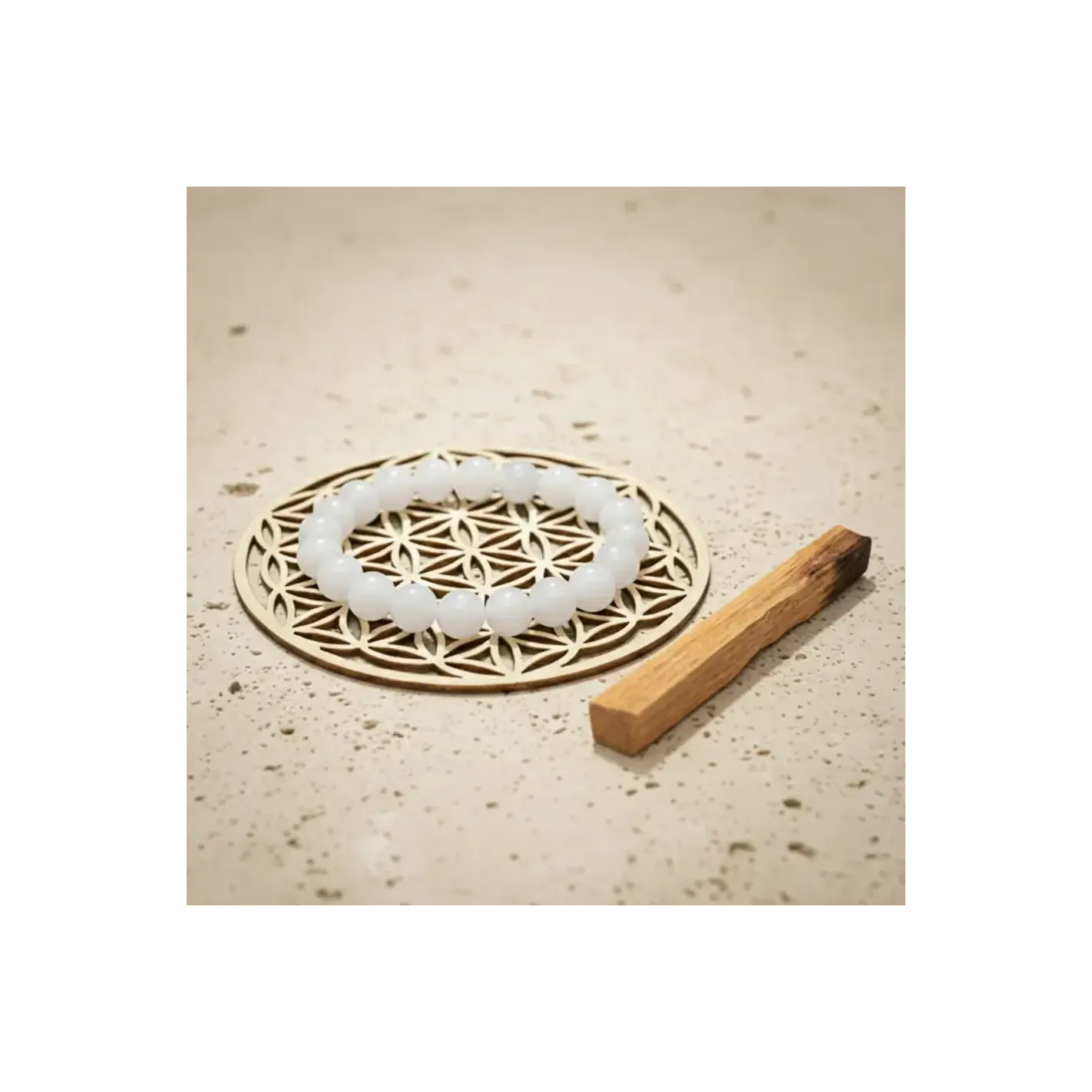 - Plaque Fleur de Vie : Pour recharger votre bracelet et maintenir son énergie pure et stable.